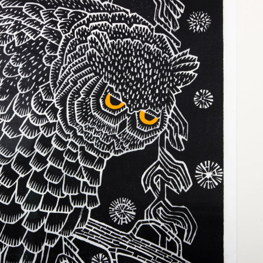 Winter Owl - Woodcut print