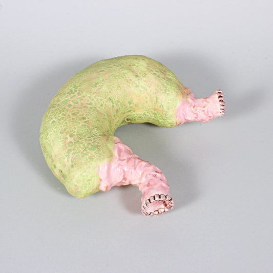 Created during residencies at Medalta and Banff Centre for Arts, as well as during her studies at Emily Carr University and the University of Manitoba, Julianna’s work uses dark humour to explore our complicated relationship with food. She highlights how food can bring comfort and cultural connection, while also reminding us of the guilt, excess, and waste tied to overconsumption. This exhibition invites viewers to reflect on where our food comes from, how it is produced, and our growing distance from the realities of industrial food systems in the Western world.