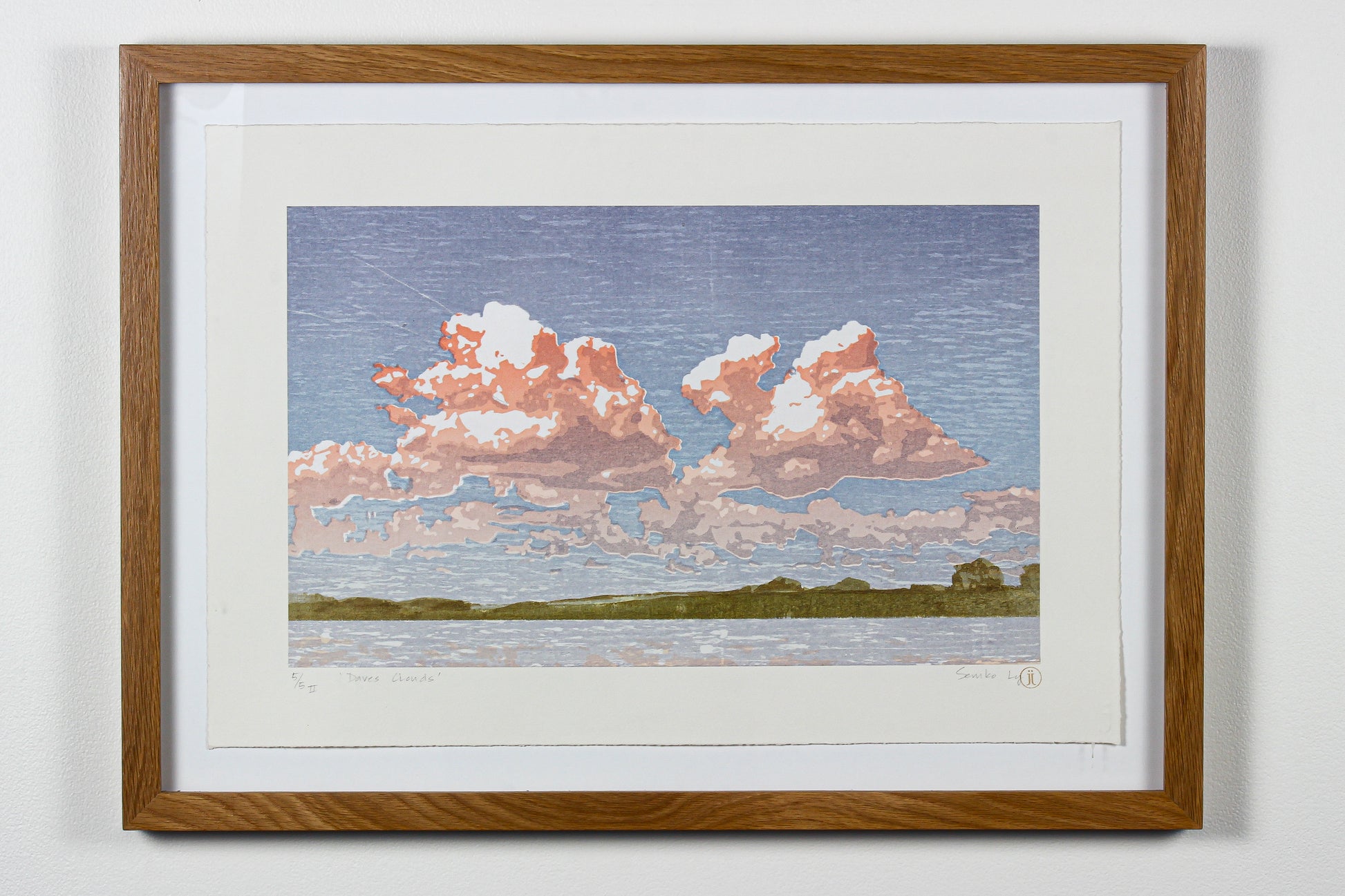 Woodcut on kozo, chine collé to Sommerset Satin, red oak & maple frame