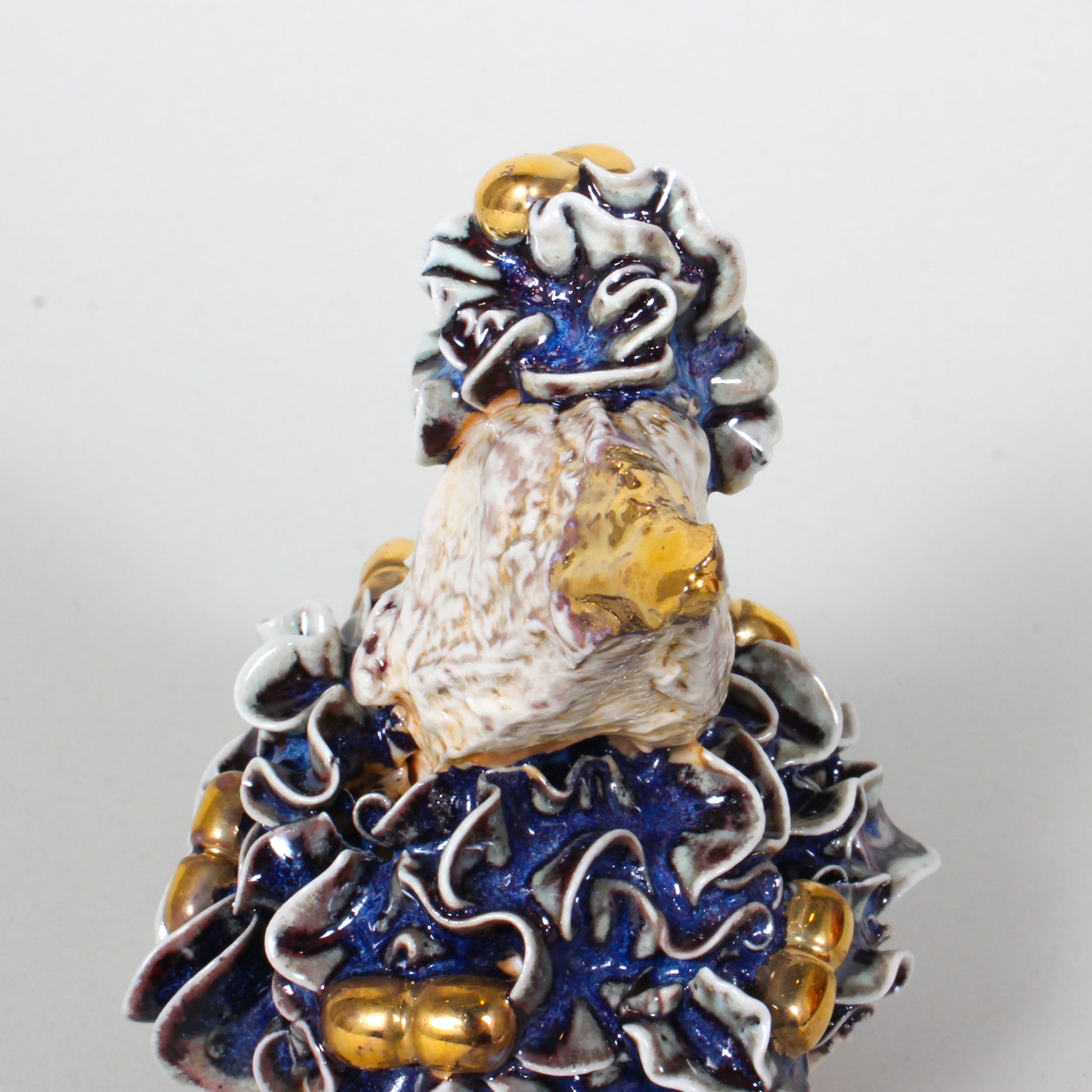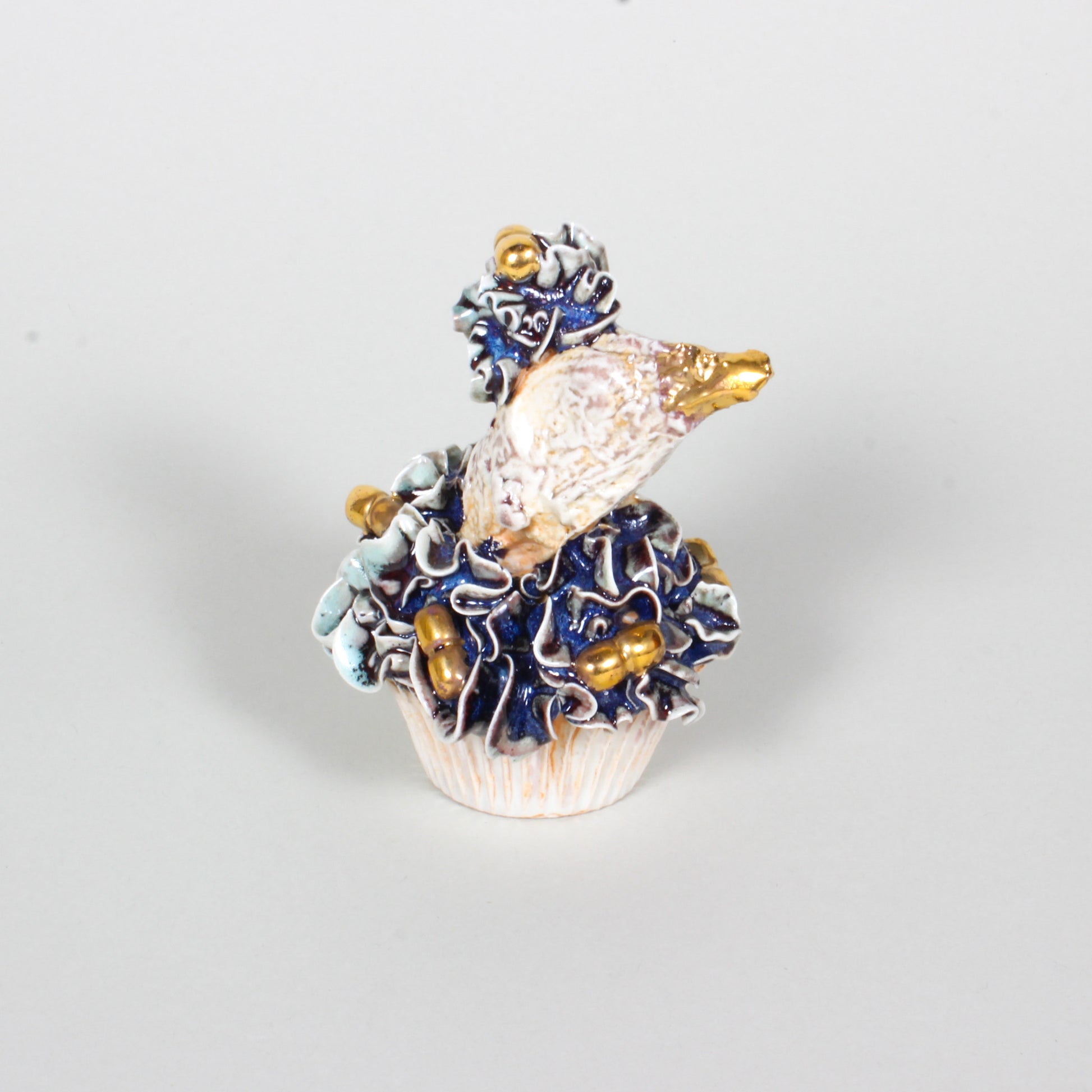 Ceramic, porcelain, soda fired with gold lustre; wheel thrown, hand built, slipcast