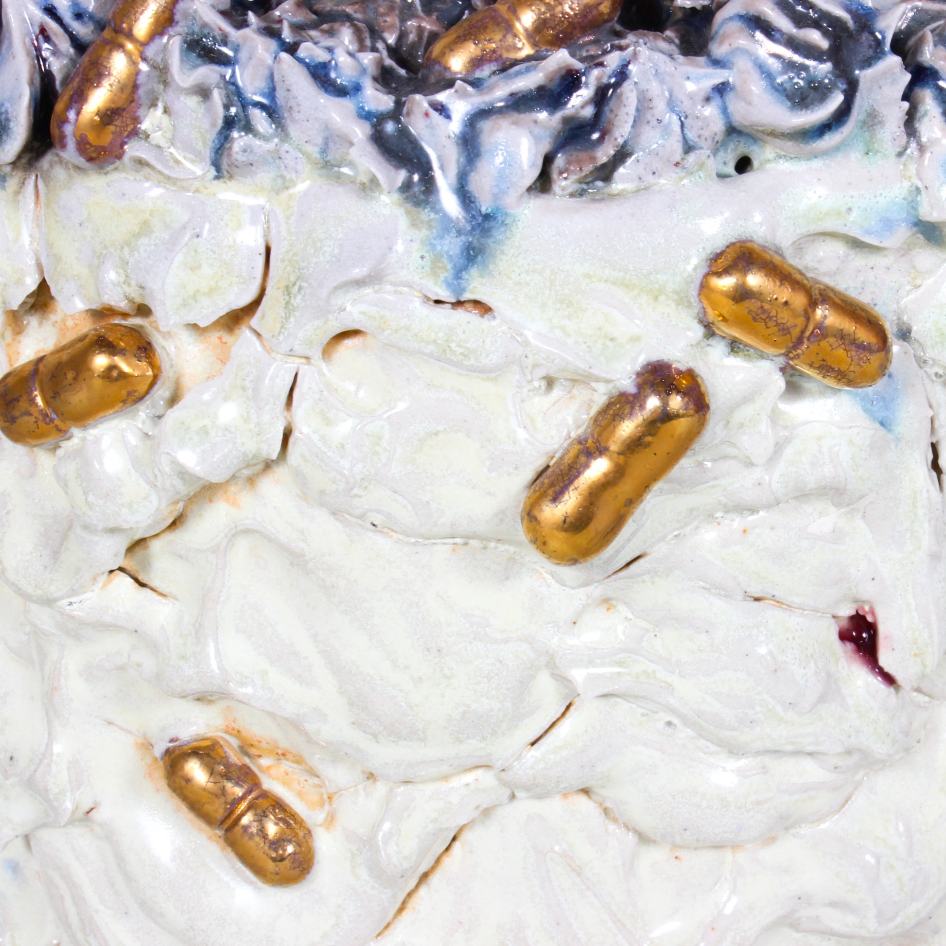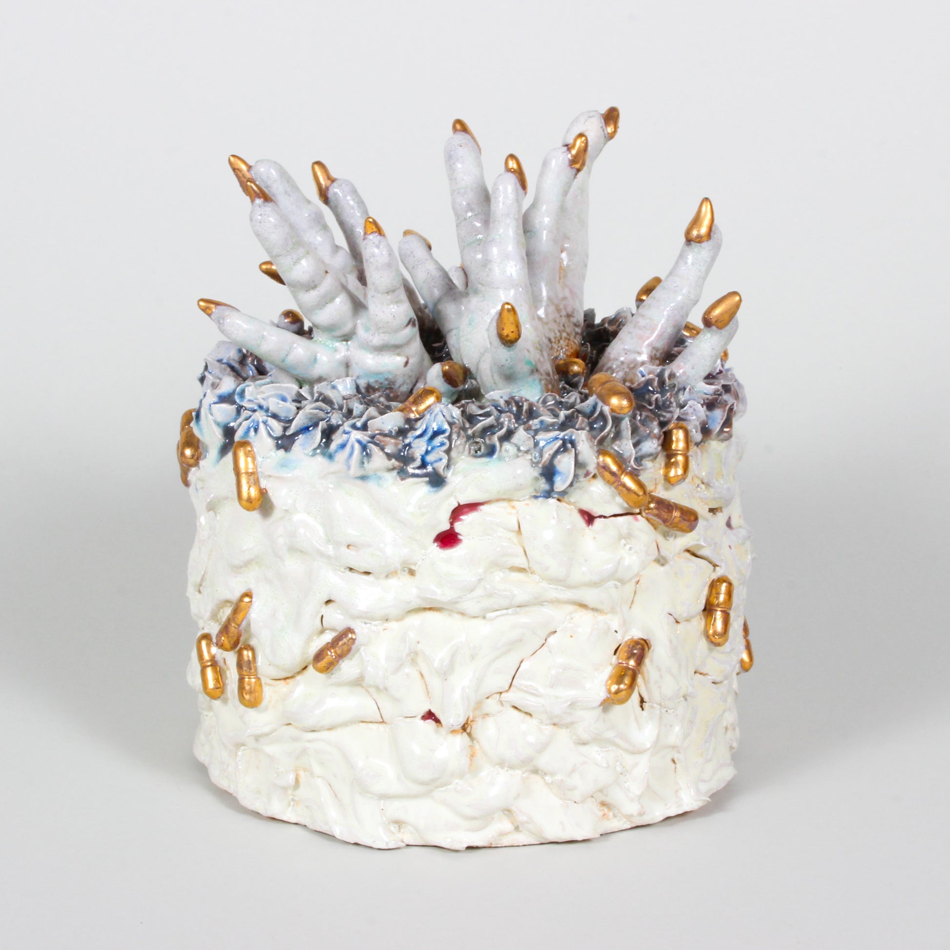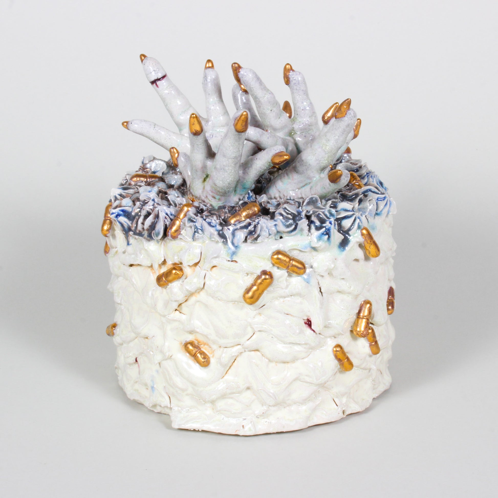 Soda fired cake, stoneware, gold luster; wheel thrown, hand built, slipcast