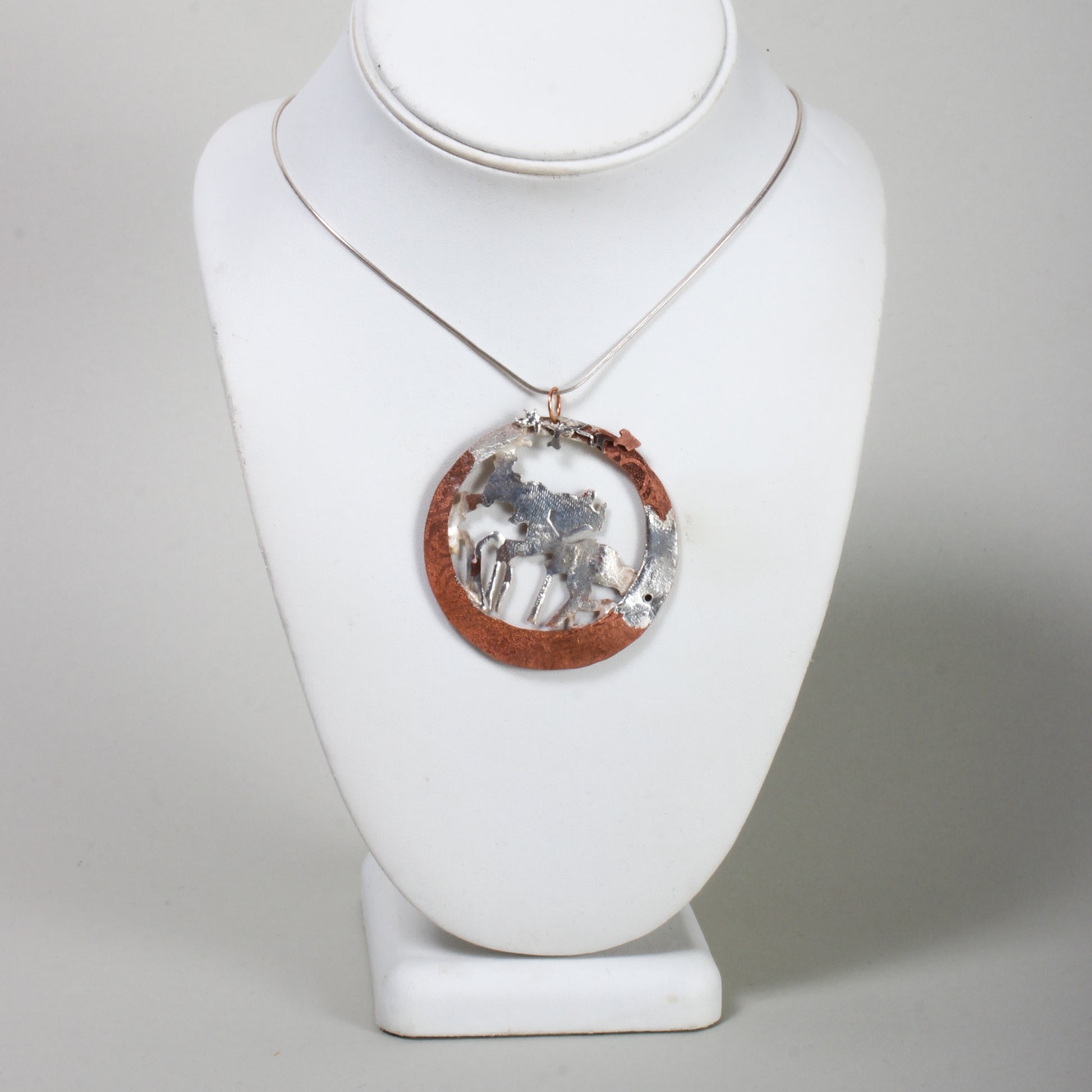 Silver fused copper, silver tube rivet. Initials inscribed on back.