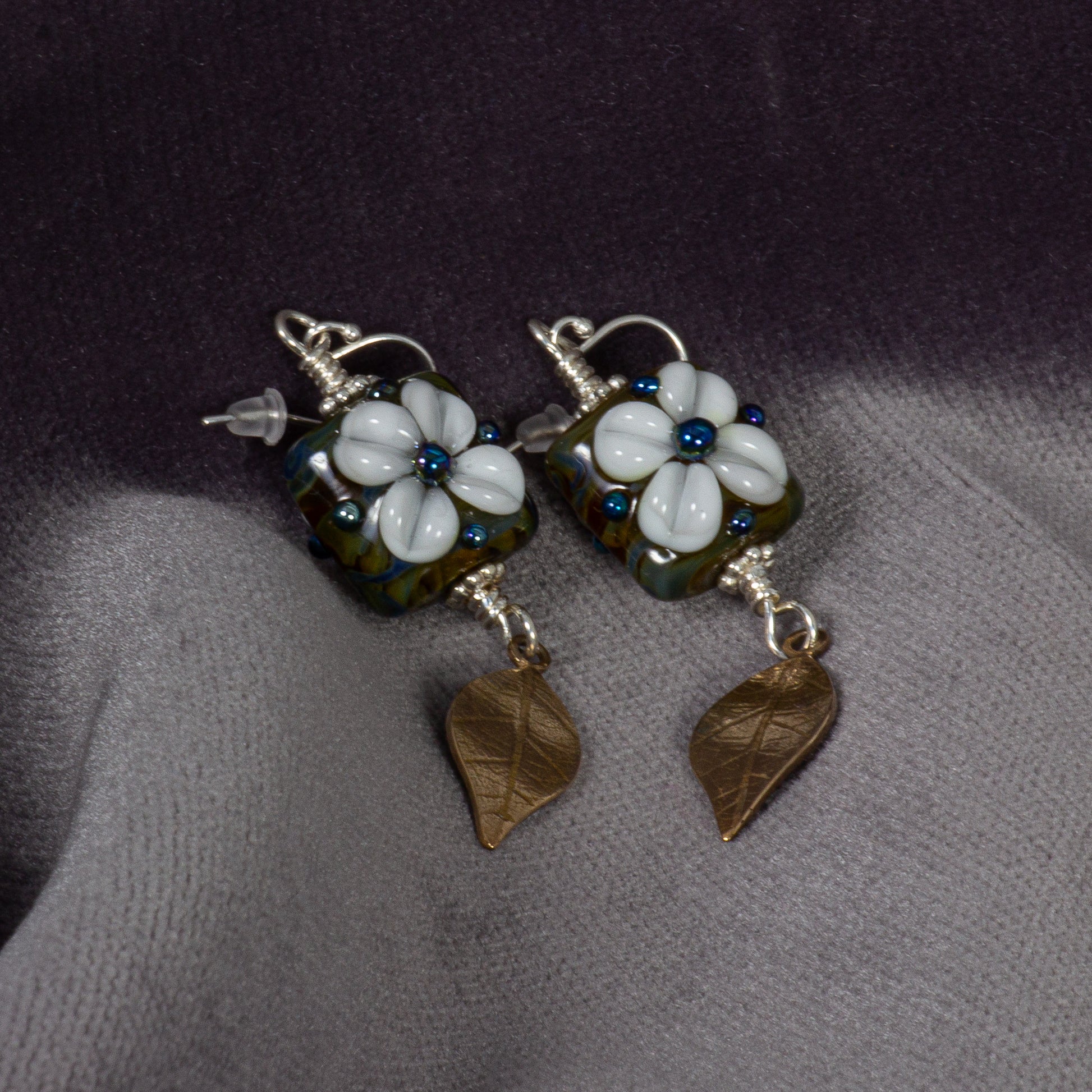 Lampword glass, bronze, sterling silver; hand-etched leaves