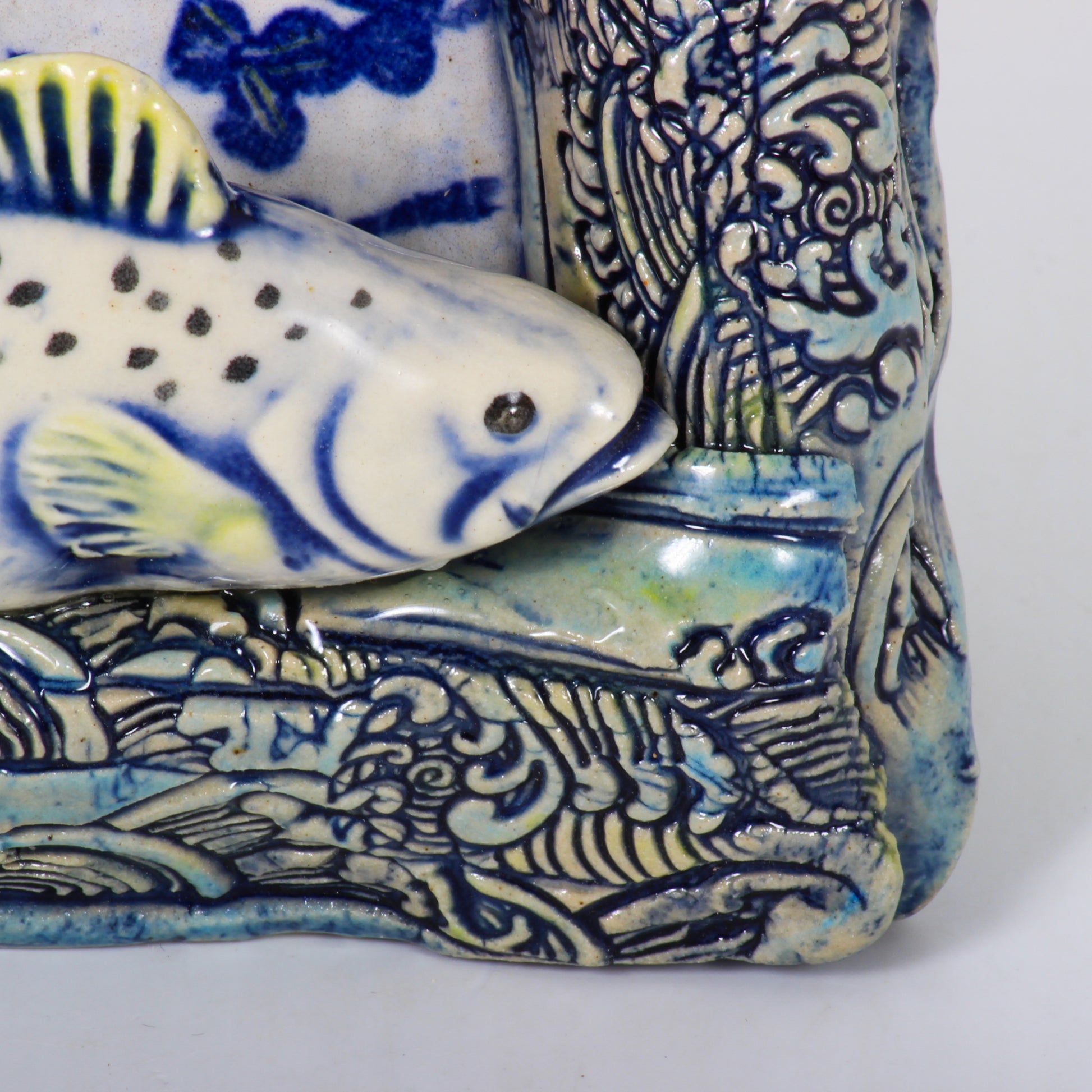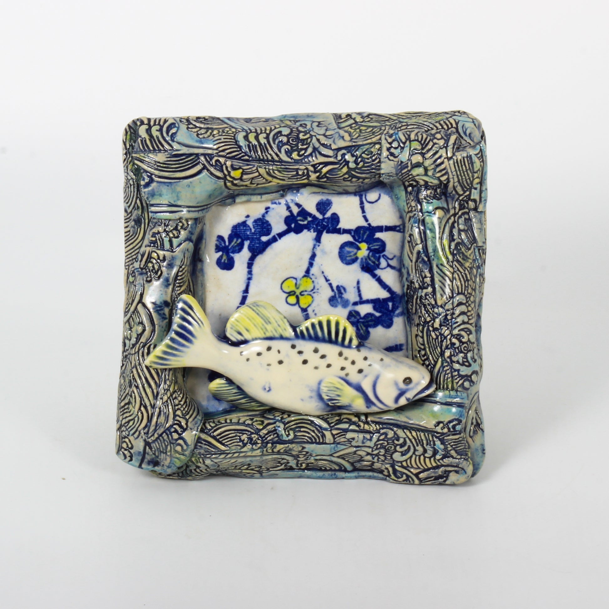 Ceramic wall sculptures. Handbuilt from stoneware clay. Additions of slipcast elements. Comes with hanging wire on back.